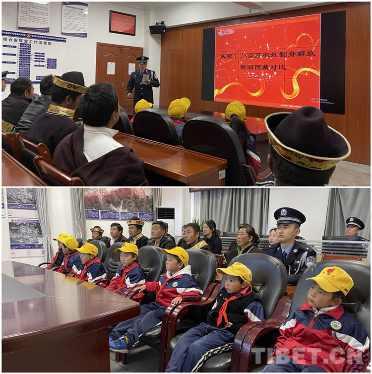 儀(yi) 式結束後,派出所邀請學校師生及群眾(zhong) 代表參觀警營,民警貢秋羅布還為(wei) 學生們(men) 上了一堂生動的西藏百萬(wan) 農(nong) 奴解放曆史課,講解了西藏百萬(wan) 農(nong) 奴在中國共產(chan) 黨(dang) 的帶領下,打破政教合一的封建農(nong) 奴製的枷鎖;講述了短短幾十年跨越上千年的社會(hui) 主義(yi) 新西藏的發展奇跡。課後,小學生多吉說,“從(cong) 這堂課裏,知道以前的小孩多麽(me) 可憐,現在我們(men) 有了警察叔叔和老師們(men) 的幫助,一定要好好學習(xi) ,長大以後報效祖國。”