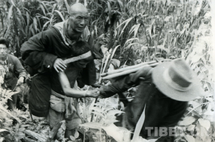 19519年前,宗本紮巴騎在人背上進入墨脫的情景