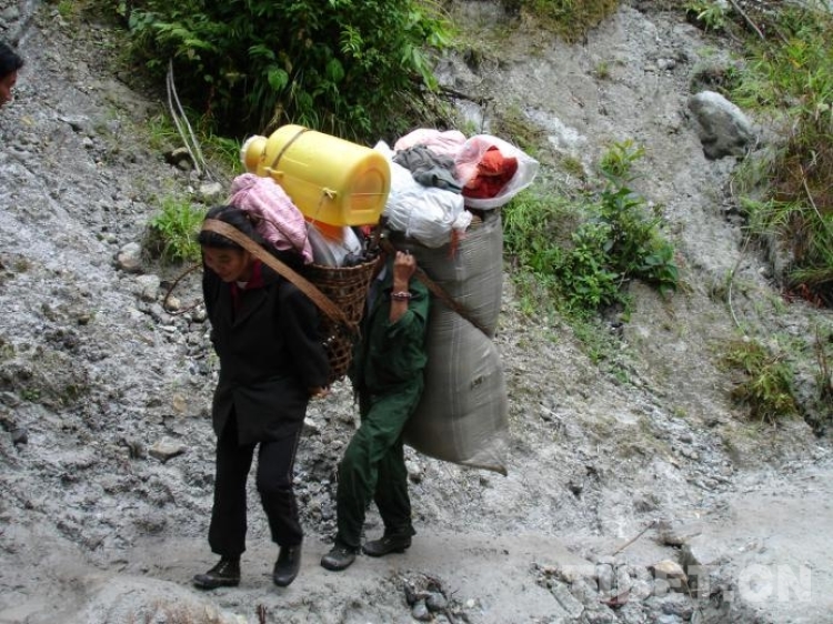 由於(yu) 境內(nei) 交通閉塞,交換是墨脫門巴族、珞巴族群眾(zhong) 獲取生活必需品的重要途徑。而對外進行物資交換,往返途中還要背負重物,翻越高山陡崖、跋涉湍急溪流,爬天梯、滑溜索、過獨木橋,一次往返需10至20天左右,勞動強度和艱險程度之大令人瞠目結舌,沿途殘留的人畜白骨充分印證了此路之艱險。