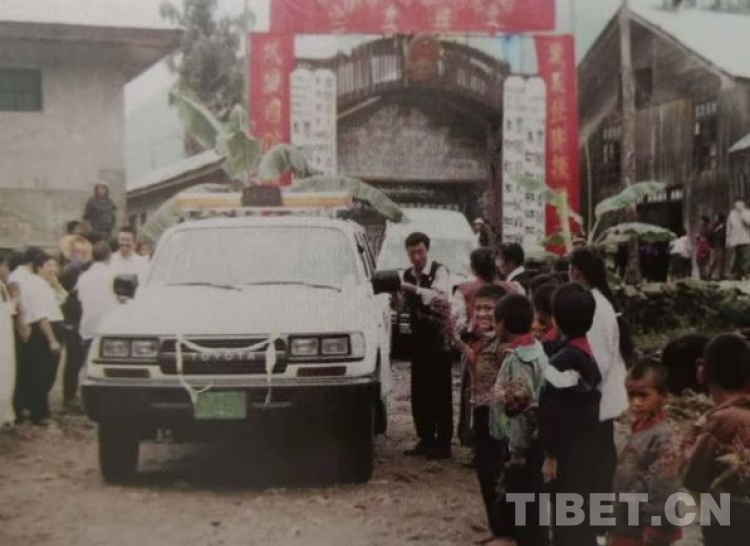 1993年9月25日,第一輛汽車駛達墨脫縣城內(nei) 的情景。