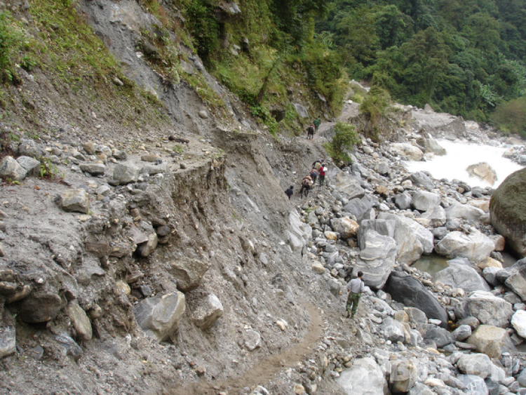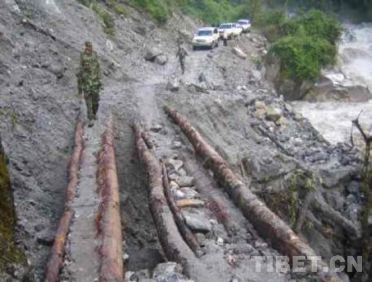 2005年6月墨脫公路段出現自然塌方損毀嚴(yan) 重。