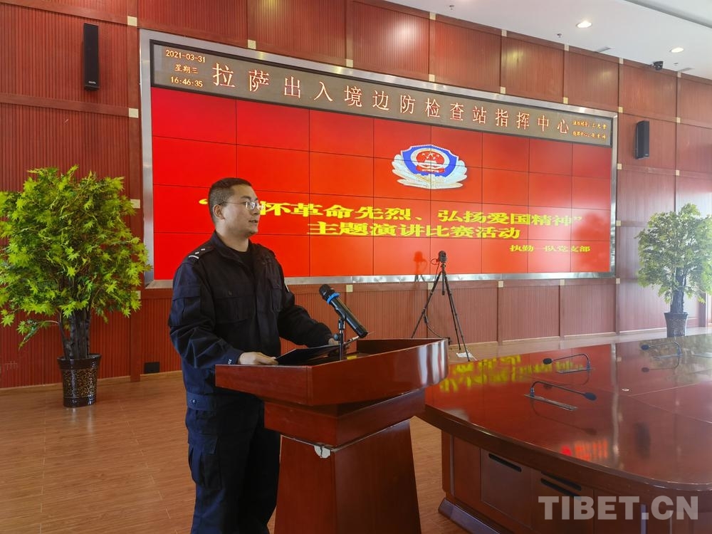 圖為(wei) 西藏拉薩出入境邊防檢查執勤一隊主題演講比賽現場