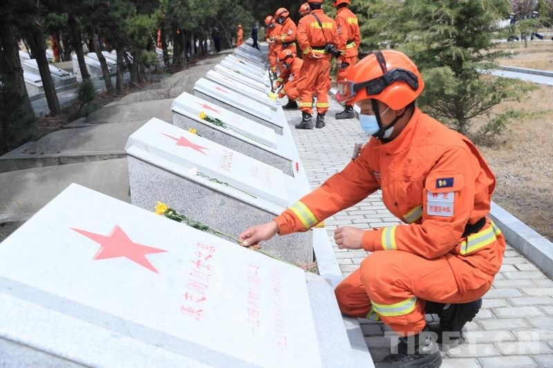 圖為(wei) 察隅縣森林消防中隊指戰員來到英雄坡紀念園開展清明節祭奠烈士