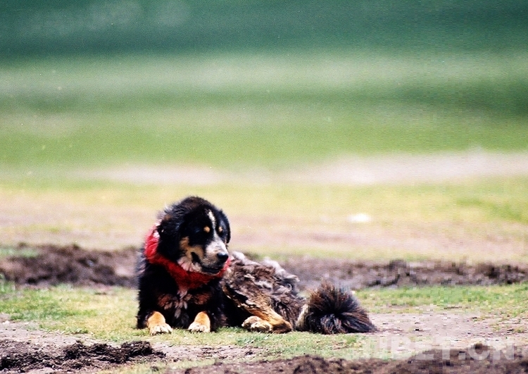 同時,藏獒也是最有情的動物。有一年的夏天,那曲地區(現改為(wei) 那曲市)牧場的4名牧工趕著60多頭犛牛,帶了條藏獒前往亞(ya) 根茶卡馱鹽。在他們(men) 馱鹽回來的路上,因為(wei) 內(nei) 部發生爭(zheng) 吵,一人在殺死三名同伴後,趁夜色騎馬逃跑了。當那曲地區行署派十幾個(ge) 人趕赴現場察看時,那條有半個(ge) 月沒吃一口食的藏獒,耷拉著腦袋仍守護在三位主人的屍體(ti) 旁。當遠遠看到陌生人來時,它卻精神一振,瘋狂地撲上來,將馬背上的人一個(ge) 個(ge) 拽下來,又咬又拖,弄得辦案的人難以對付。後來辦案人用兩(liang) 根栓馬繩,套住這條藏獒的脖子,總算製服了它。附近有位牧民見這是條好犬,要走了它,並用鐵鏈拴在帳篷門口。但那藏獒始終不吃任何東(dong) 西,直至餓死,隨主人而去。