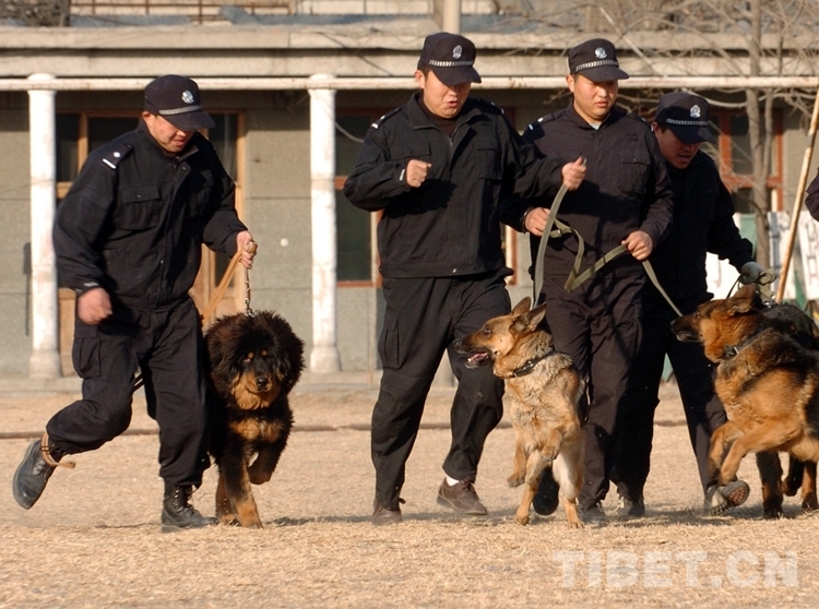 藏獒因其身材高大、性情威猛、對主人極度忠誠和對陌生人的極度警惕的特點,很適合應用於(yu) 公安部門的防暴工作。
