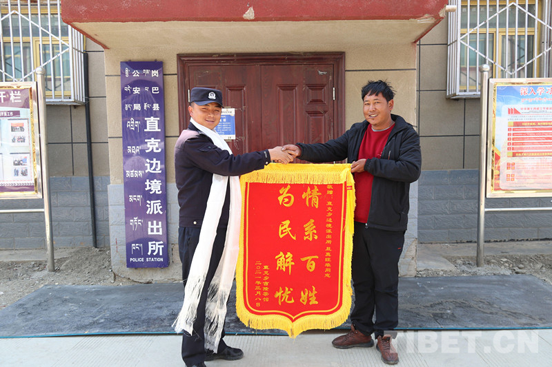 “真是太感謝你們(men) 了,如果沒有你們(men) 的及時幫助,我不知道我這茶館還在不在了”,4月13日,西藏日喀則市崗巴縣直克鄉(xiang) 吉隆茶館的邊巴將一麵印有“情係百姓、為(wei) 民解憂”錦旗送到西藏日喀則邊境管理支隊直克邊境派出所,以表達對派出所民警旦真旺堆同誌英勇救火的感激之情和崇高敬意。