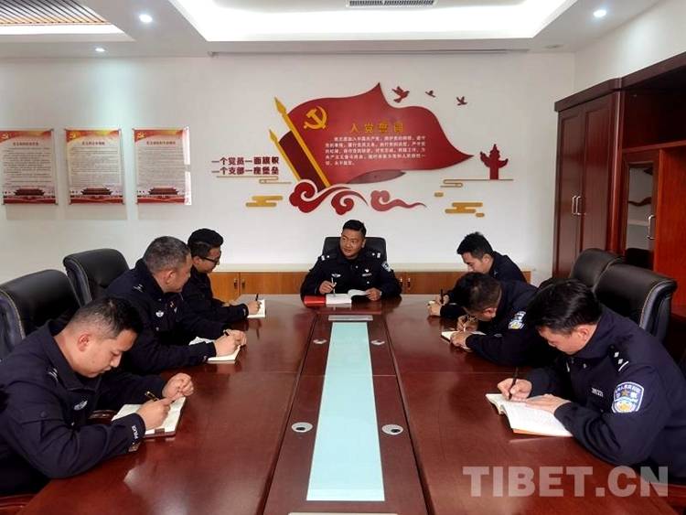 圖為(wei) 拉薩出入境邊防檢查站執勤一隊組織民警學習(xi)