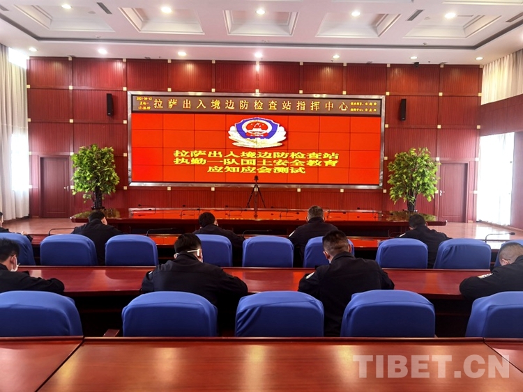 圖為(wei) 拉薩出入境邊防檢查站執勤一隊國土安全教育應知應會(hui) 測試