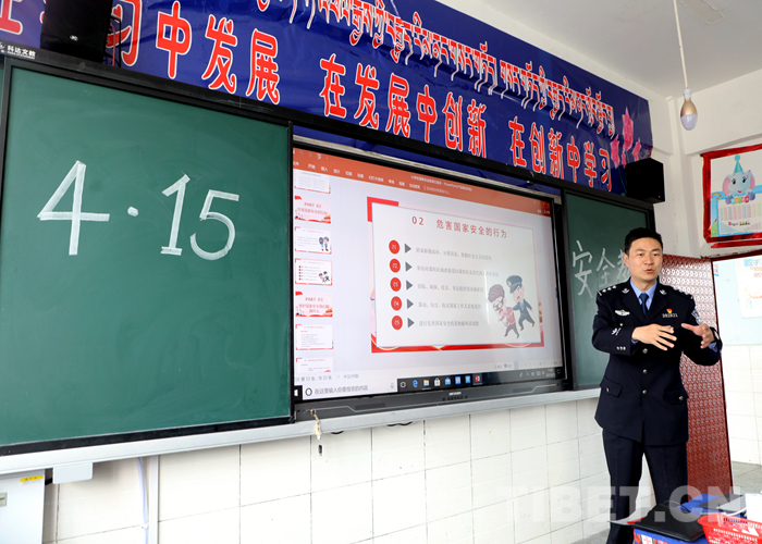 國家安全法教育小課堂通過教學、演示、播放視頻等多種宣傳(chuan) 形式向小學生介紹了設置全民國家安全教育日的重大意義(yi) ,重點講解了危害國家的行為(wei) ,立足於(yu) 維護國家安全我們(men) 能做什麽(me) 進行了教育引導和思想上的啟發。