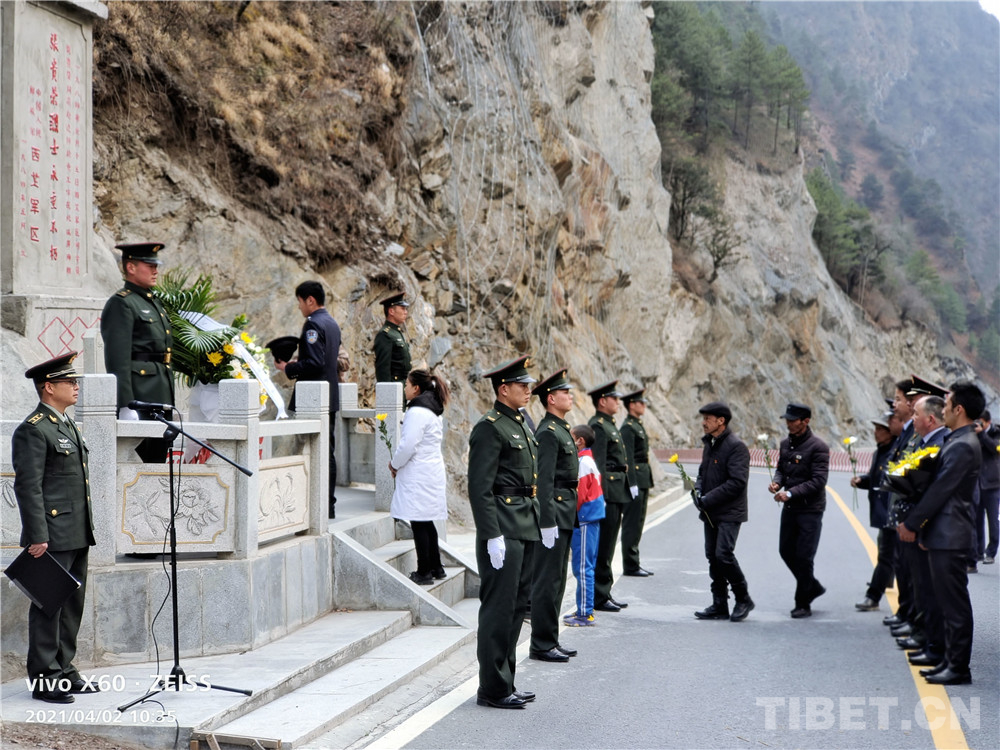 圖為(wei) 隆子縣組織黨(dang) 員幹部在張貴榮將軍(jun) 墓前獻單束哀菊以表哀思。隆子縣供圖