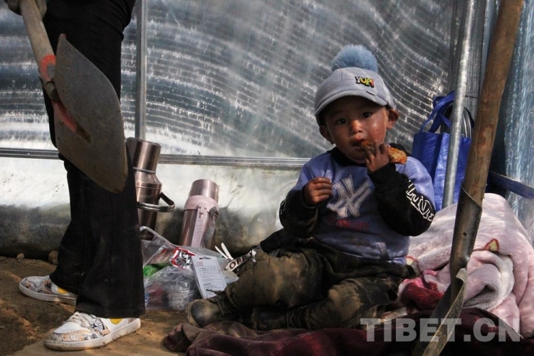 圖為(wei) 村中小孩在靈芝種植大棚一隅悠閑地吃著零食