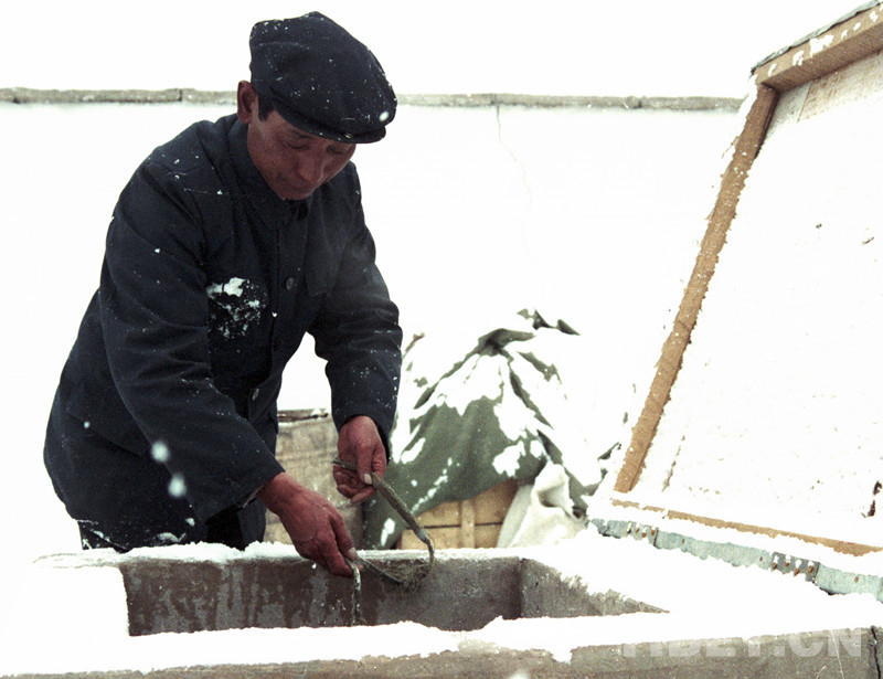 這是公覺紮朗在文部辦事處(現改為(wei) 尼瑪縣)住地冒雪給家裏打井水(唐召明1989年攝)