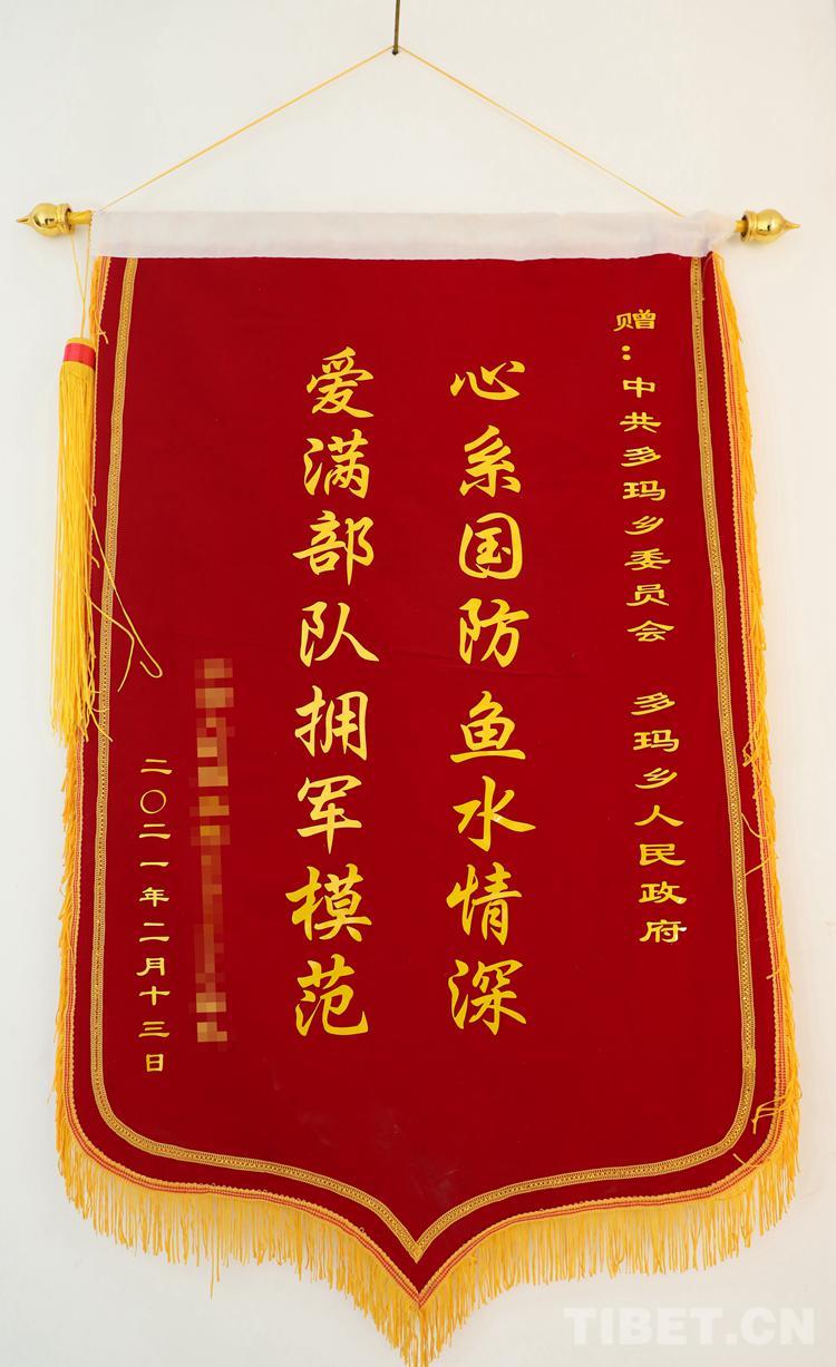 圖為(wei) 駐地部隊贈送的錦旗 攝影:賈華加