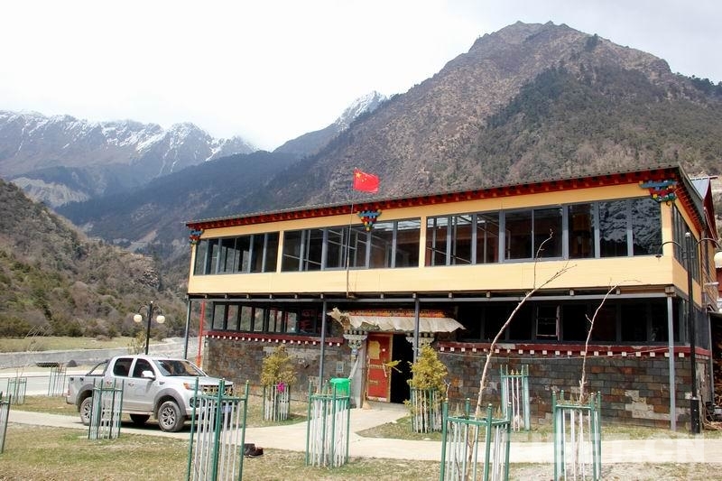 圖為(wei) 次卓瑪在玉麥村的新家,五星紅旗在漂亮的二層藏式小樓屋頂迎風飄揚,門前停著新買(mai) 的皮卡車 攝影:劉莉