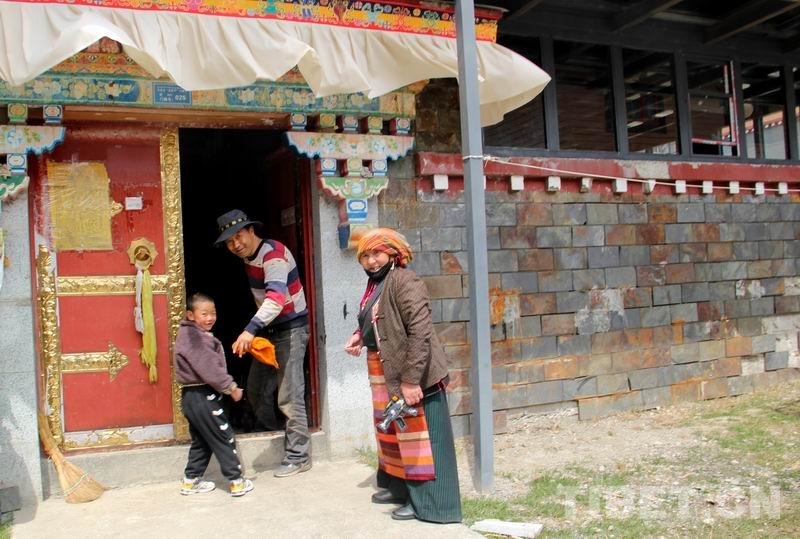 圖為(wei) 次卓瑪與(yu) 女婿拉巴多吉正在家門口招呼剛剛放學的小外孫回家吃飯 攝影:劉莉
