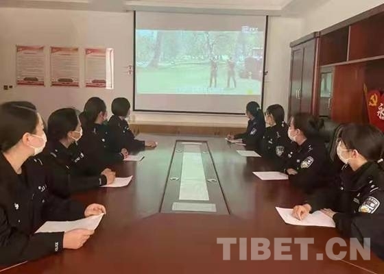 圖為(wei) 青年民警觀看電影《守邊人》