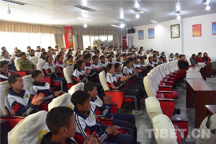 圖為(wei) 中隊指戰員土登旺堆為(wei) 左貢縣中學師生詳細講解地震相關(guan) 知識、應對措施