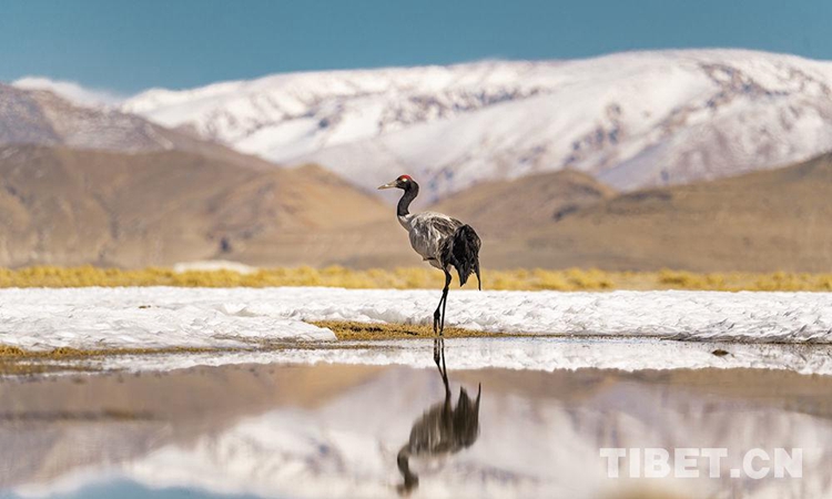 圖為(wei) 得益於(yu) 西藏生態環境越來越好,黑頸鶴無憂無慮地徜徉在羌塘草原上,和諧而優(you) 雅 攝影:趙耀
