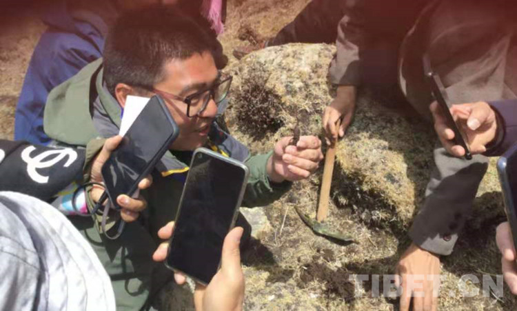 圖為(wei) 周圍遊客在拍挖到的蟲草 攝影;拉姆