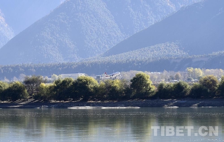 圖為(wei) 2020年11月拍攝的一架飛機從(cong) 西藏自治區林芝市米林機場起飛 攝影:王媛媛
