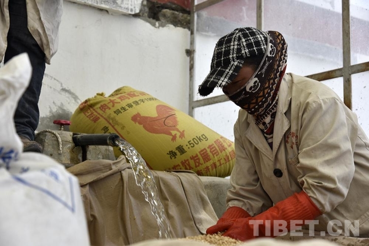 圖為(wei) 2021年4月,西藏自治區阿裏地區普蘭(lan) 縣西德村村民正在西德稞原地食品有限公司工廠裏淘洗青稞 攝影:王媛媛