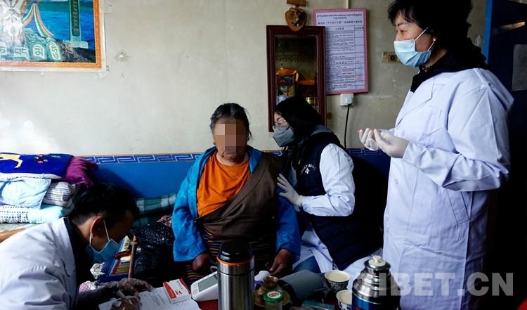 圖為(wei) 2020年4月9日,北京中日友好醫院援藏專(zhuan) 家(右一、右二)和八廓街道社區衛生服務中心醫生(左一)上門為(wei) 家庭醫生簽約老人服務 攝影:王媛媛