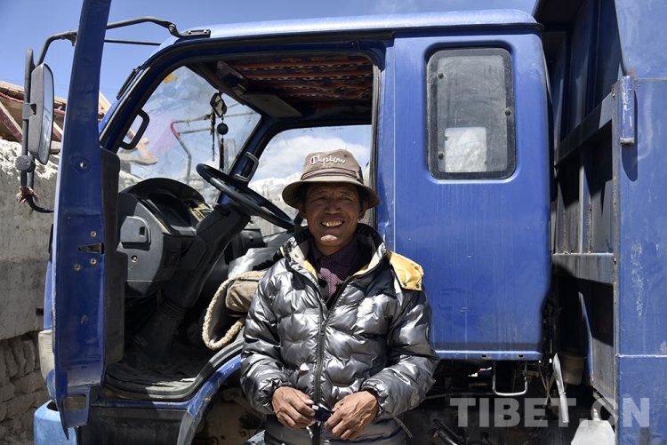 圖為(wei) 2021年4月,阿裏地區改則縣麻米鄉(xiang) 茶措村村民紮布站在新購買(mai) 的貨車前 攝影:王媛媛