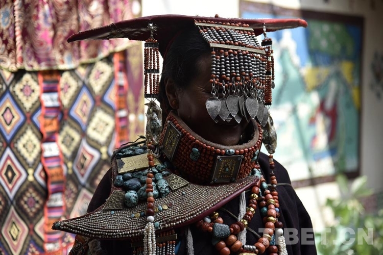圖為(wei) 阿裏地區普蘭(lan) 縣科迦村,一名婦女穿戴“孔雀服飾” 攝影:王媛媛