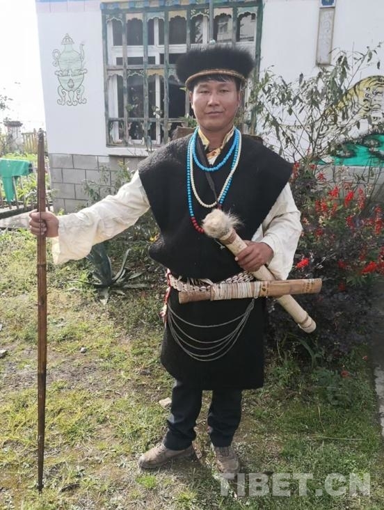 圖為(wei) 西藏自治區林芝市墨脫縣達木珞巴民族鄉(xiang) 達木村村民羅布身著珞巴族傳(chuan) 統服飾 圖片由羅布提供