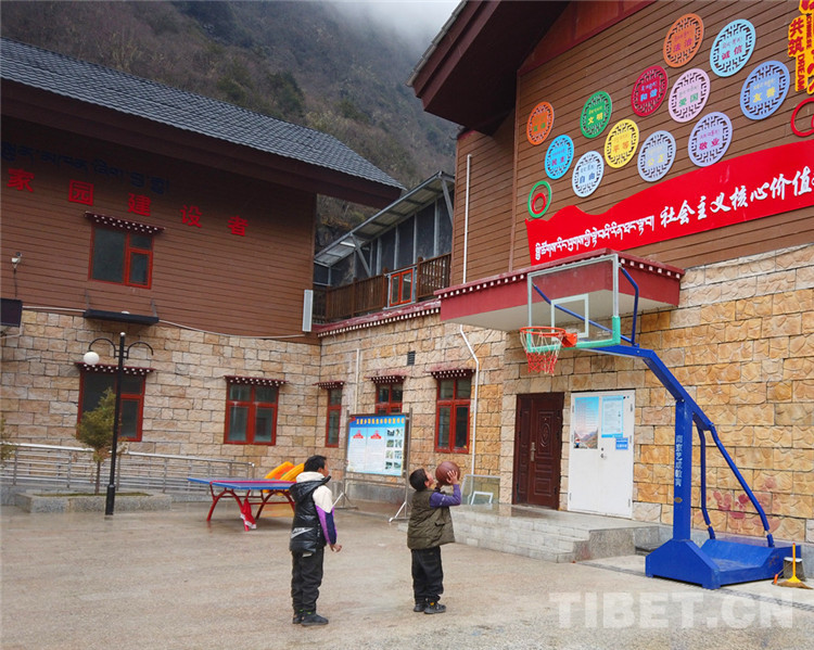 圖為(wei) 在玉麥鄉(xiang) 小學籃球場打球的小朋友 攝影:王茜