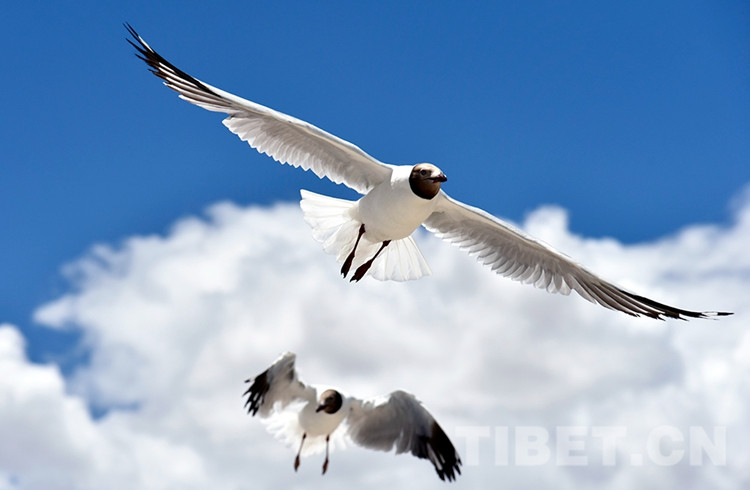 圖為(wei) 班公湖岸滑翔的棕頭鷗 攝影:王媛媛