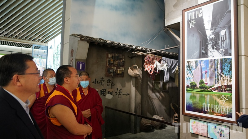 圖為(wei) 班禪參觀浦東(dong) 開發開放30周年主題展