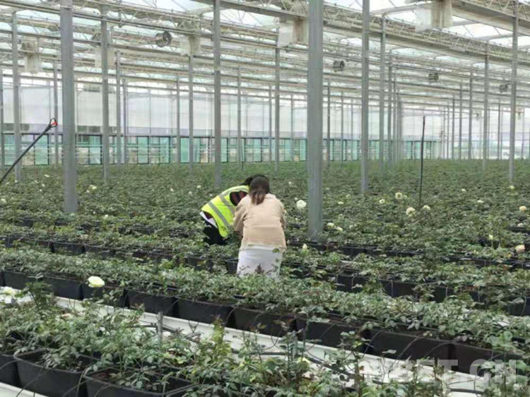 圖為(wei) 在花棚就業(ye) 的大學生正在修剪玫瑰 攝影:拉姆