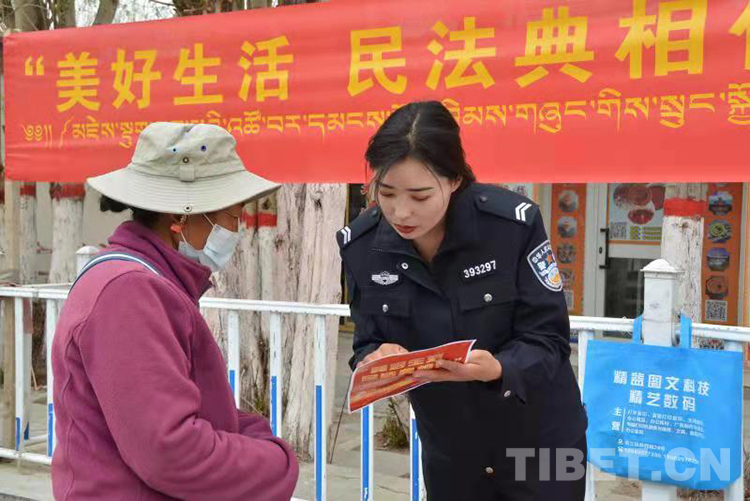 圖為(wei) 普蘭(lan) 出入境邊防檢查站民警開展“美好生活·民法典相伴”主題宣傳(chuan) 活動 攝影:格桑倫(lun) 珠