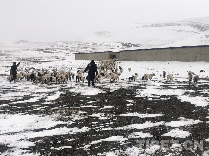 圖為(wei) 崗巴邊境派出所民警幫助牧民轉移羊群