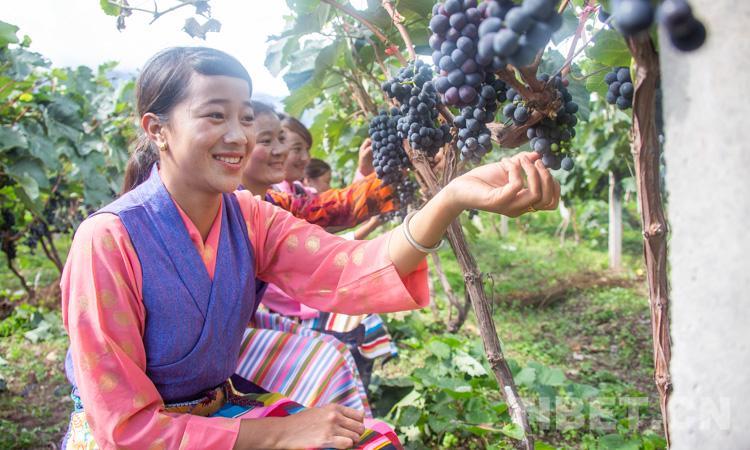 圖為(wei) 芒康縣群眾(zhong) 在葡萄園內(nei) 勞作 攝影:趙耀