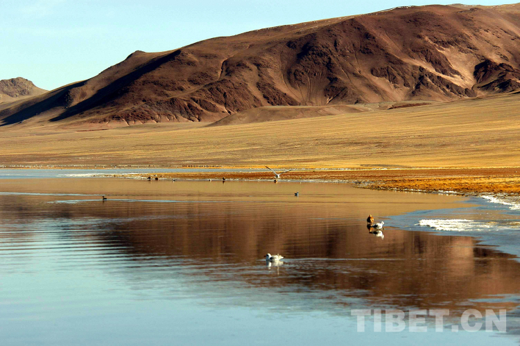 盡管是盛夏時節,風過之處仍感覺到肌膚生涼。色林錯湖水中有許多飛禽。我幻想,如果把這個(ge) 湖搬到盛夏的北京,該讓多少人欣喜若狂啊!