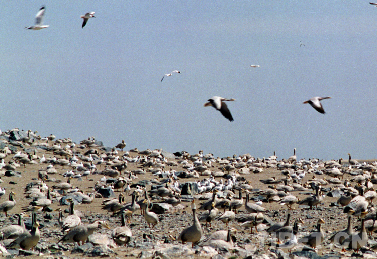 這是俄亞(ya) 爾錯鳥島上棲息的斑頭雁和魚鷗(唐召明2009年攝)