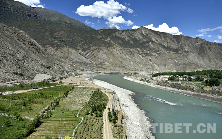 從(cong) 山南市區出發,前往桑日縣絨鄉(xiang) 境內(nei) 的施工現場,費時不到30分鍾。抵達現場時,轟鳴的架橋機伴著濤濤雅魯藏布江水,作業(ye) 人員正緊張施工。