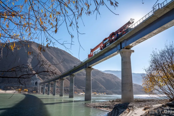 圖為(wei) 2019年12月正在絨鄉(xiang) 雅魯藏布江特大橋上鋪軌的架橋機