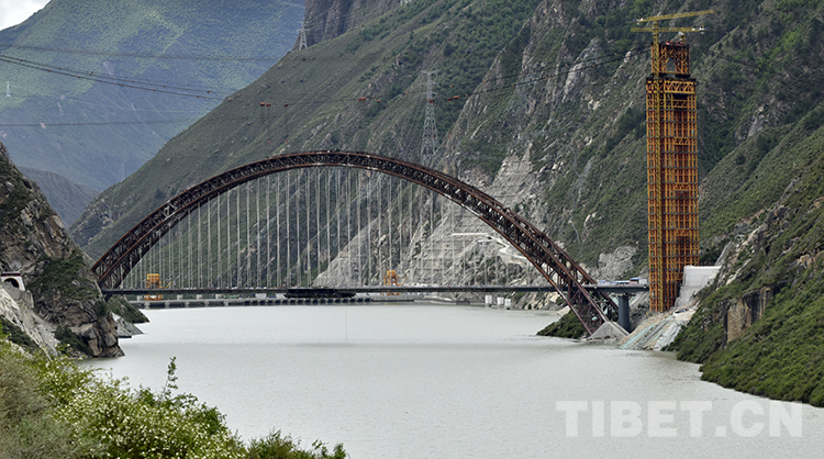 藏木雅魯藏布江特大橋創造了世界同類型鐵路橋梁海拔最高(海拔3350米)、鋼管拱跨度最大(主跨430米)、主拱鋼管直徑最大(鋼管直徑1.8米)、鋼管拱單根管內(nei) 混凝土頂升方量最多(單根管內(nei) 混凝土頂升方量1022方)的四個(ge) “世界第一”。