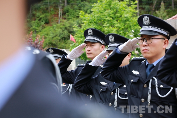 圖為(wei) 西藏亞(ya) 東(dong) 出入境邊防檢查站民警向黨(dang) 敬禮