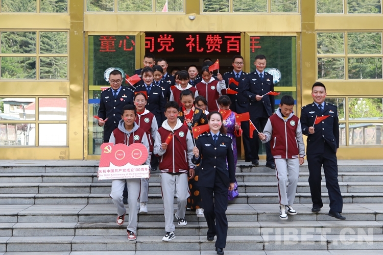 圖為(wei) 西藏亞(ya) 東(dong) 出入境邊防檢查站與(yu) 駐地學生開展“童心向黨(dang) 禮讚百年”係列活動