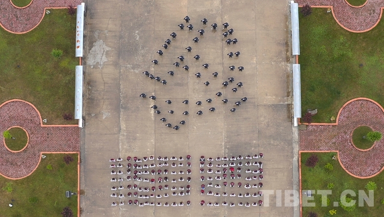 圖為(wei) 西藏亞(ya) 東(dong) 出入境邊防檢查站組織全站民警和140餘(yu) 名中學生組成“黨(dang) 徽下的倒計時”方陣,慶祝建黨(dang) 100周年