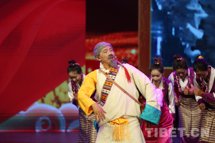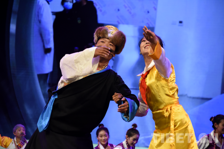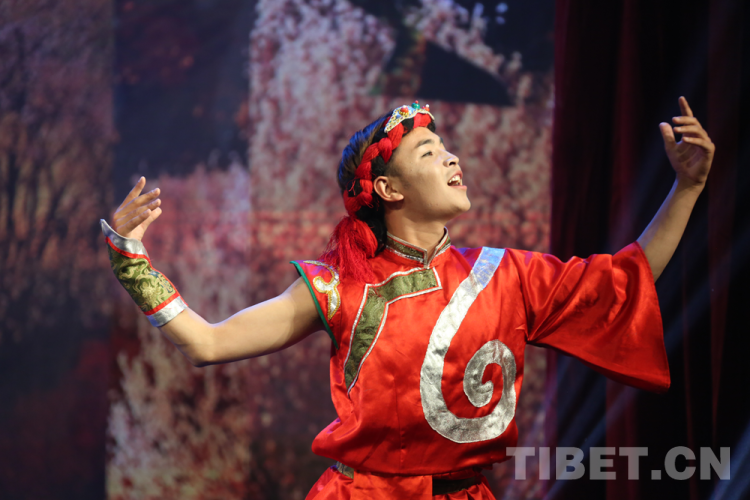 圖為(wei) 正在演出組歌《共產(chan) 來了苦變甜了》《我愛金子般的家鄉(xiang) 》《洗衣歌》《西藏人民齊歡暢》攝影:次旦拉姆