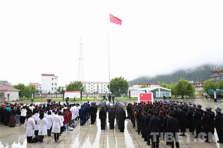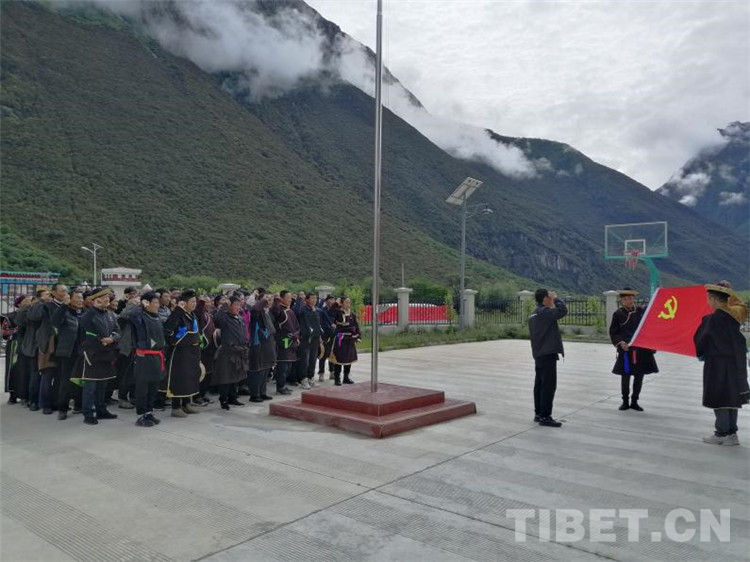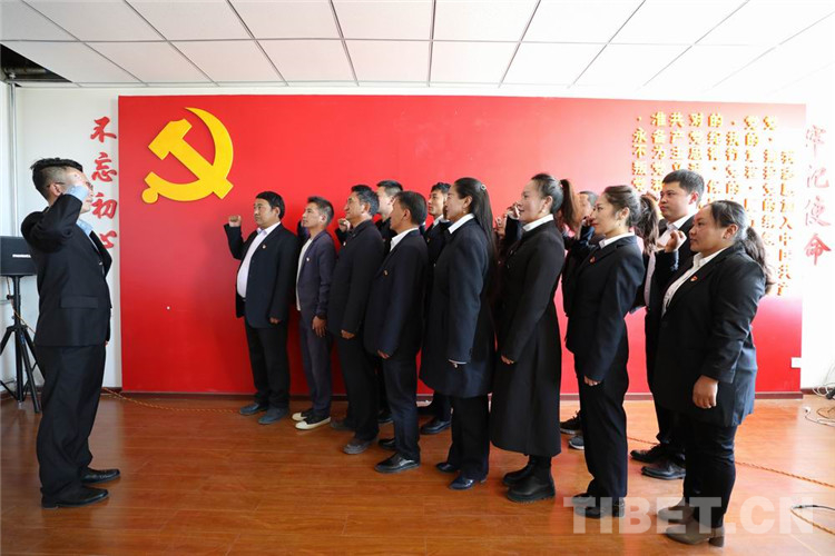 圖為(wei) 林芝市工布江達縣幹部群眾(zhong) 重溫入黨(dang) 誓詞 攝影:公布