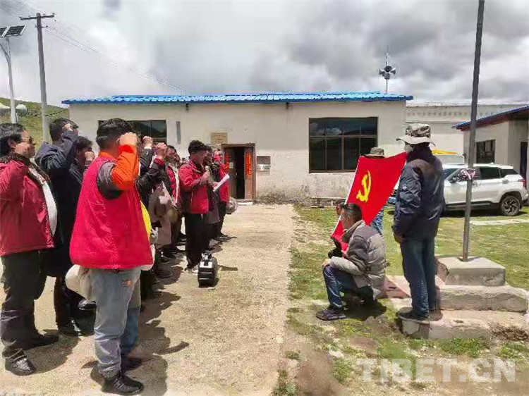 圖為(wei) 那曲市色尼區油恰鄉(xiang) 幹部群眾(zhong) 重溫入黨(dang) 誓詞 攝影:馬建國
