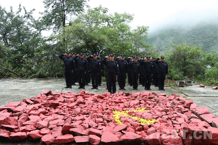 圖為(wei) 機關(guan) 民警在石頭堆砌的黨(dang) 旗前重溫入黨(dang) 誓詞 攝影:鄒興(xing) 國