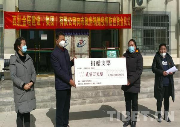 圖為(wei) 西藏金塔集團向日喀則市政府捐贈疫情防控資金