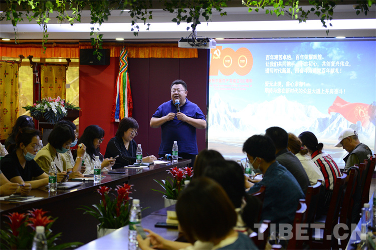 圖為(wei) “同心·共鑄中國心”組委會(hui) 項目辦公室主任薛豔斌行前介紹果洛州具體(ti) 情況